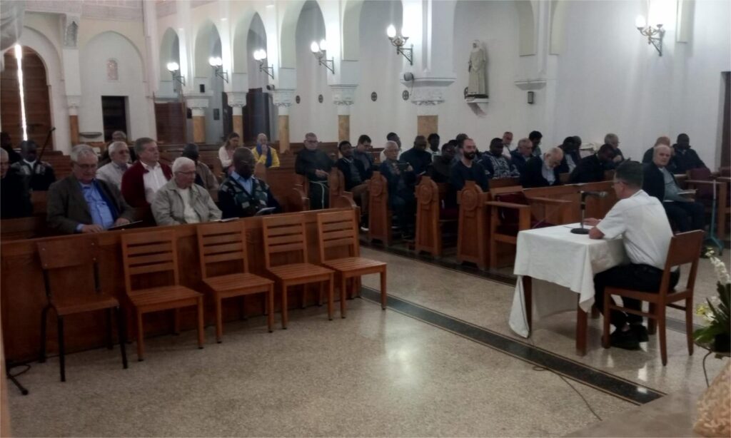 Quelques heures avant la messe, les prêtres de l’archidiocèse de Rabat se sont retrouvés pour un repas fraternel, suivi d’un temps de recollection en préparation au renouvellement de leurs promesses. Cette recollection a été animée par le père Jordy Llambrich, prêtre du diocèse de Marseille, actuellement en formation à l’Institut œcuménique de théologie Al Mowafaqa à Rabat.