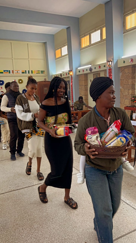 C’est donc avant l’offertoire, au son des musiques et des pas de danses traditionnels que les communautés ont offert leurs cadeaux au Petit Jésus.