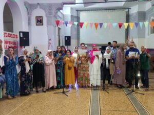 La salle de conférence de l’école Notre Dame, spécialement décorée pour l’occasion, a résonné aux sons de la musique, des chants et des danses animés par les élèves et leurs formateurs. Ces derniers ont entraîné l’assemblée dans une ambiance enjouée, au rythme des mélodies marocaines.