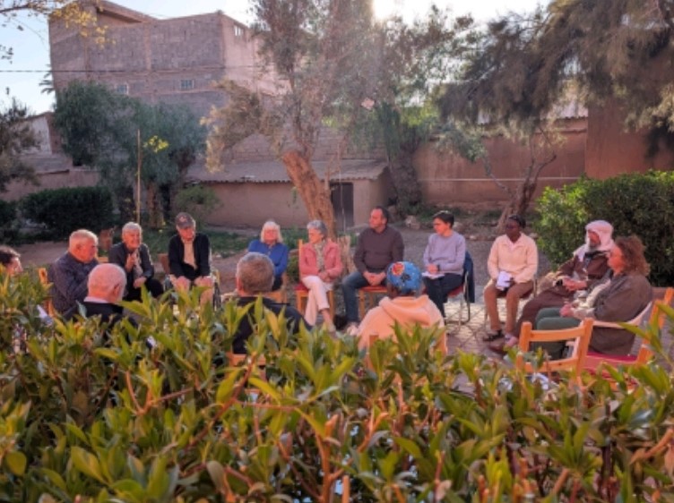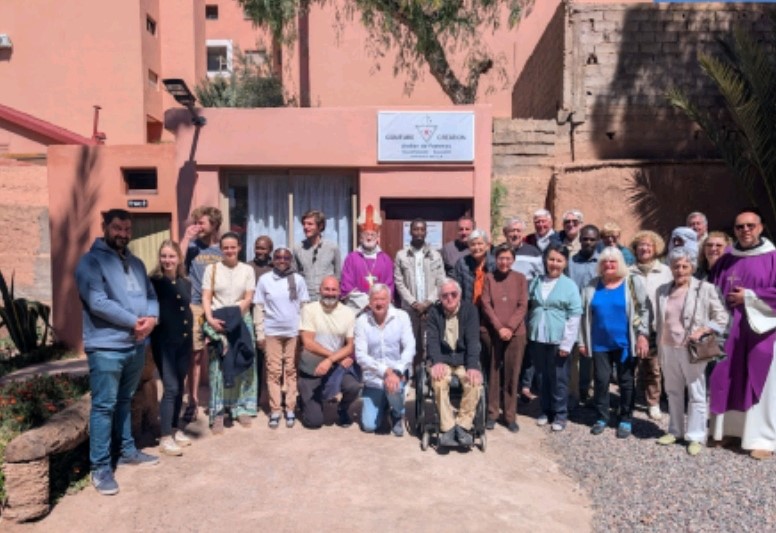 La visite pastorale de notre évêque, Mgr Cristóbal López Romero et de son Vicaire Général, P. Marc HELFER dans la région du Drâa-Tafilalet, avait démarré le mercredi 11 mars à Midelt, par une rencontre avec les moines de ND de l’Atlas autour d’un repas avec les sœurs Franciscaines Missionnaires de Marie (FMM). Après avoir passé la journée de jeudi à Errachidia, voici l’Évêque, le Vicaire Général et le Père Éric, le curé et prêtre accompagnateur des communautés chrétiennes de la région, en direction de Ouarzazate avec un trajet de 300km et 4h00 de route.