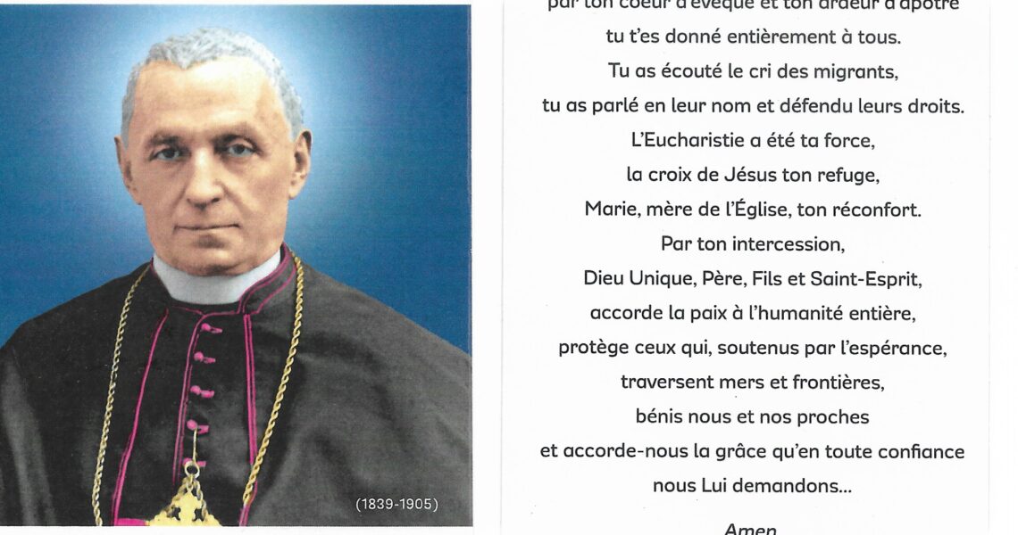 D’un geste rapide, le service d’accueil distribue son image, aussitôt la Communion terminée. La cathédrale est comble ce dimanche 9 octobre elle vient de fêter ses cent ans. Dans toute sa longue histoire, elle n’avait jamais entendu ce nom. Mais aujourd’hui Giovanni Battista Scalabrini, canonisé à Rome est cité à tout moment de la messe présidée par Père Daniel: aux invocations, à l’homélie, aux intercessions, à la bénédiction. Sa présence de « père des migrants » plane au-dessus de toute cette foule de visages qui, par le majestueux plafond de cèdre en forme de navire, fait penser à un de ces paquebots de son temps voguant vers l’Amérique. Comme Abraham, c’est toujours vers l’inconnu que nous marchons et souvent seul Dieu nous tient la main…